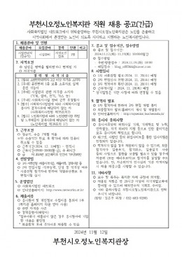 부천시오정노인복지관에서는 아래와 같이 시설관리직(정규직...