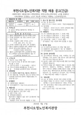 부천시오정노인복지관에서는 아래와 같이 시설관리직(정규직...